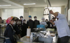 高岡魚商組合青年部の5名を講師にお迎えし、3学年「世界の食文化」選択者の生徒が、ふくらぎの刺身作りを体験しました。実際に魚をおろし…