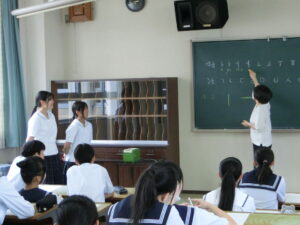 当日は、25中学校から104名の参加者(85名の中学生と19名の保護者)を迎え、受付、誘導などを生徒会執行部が中心となって行いました。全体会の司会や学校生活についてのプレゼンテーション、異文化体験講座でのアシスタントなど、生徒たちは任された役割をしっかりと果たし、中学生と交流しました。部活動見学でも和気藹々とした様子が見られました。