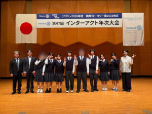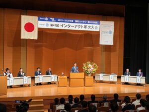 10月19日(日)ウイング・ウイング高岡4Fホールにおいて「第47回インターアクト年次大会」が開催されました。本校はホスト校として8名の生徒が一年前から準備し、前日リハーサル、そして当日は開会点鐘・開会宣言に始まり、表彰や各校活動報告の進行など一日を通して大会の運営に大活躍してくれました。