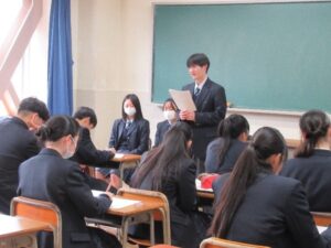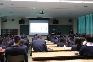 3年生が1,2年生に向けて課題研究を発表したり就職・進学の経験を伝えたりする「ドリカム伏木・受験報告会」を開催しました。5限目には、3年生の中から選抜されたチームが、筋トレ・医療・職業選択のテーマなどで、興味溢れる発表を行いました。6限目には、希望する進路に分かれ、3年生が進路志望理由や勉強法などを伝えました。