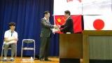 中国大連市第十二中学,韓国水原市清明高等学校の歓迎式・交流会が行われました。各校の代表者と代表生徒の挨拶に続き、記念品交換が行われました。